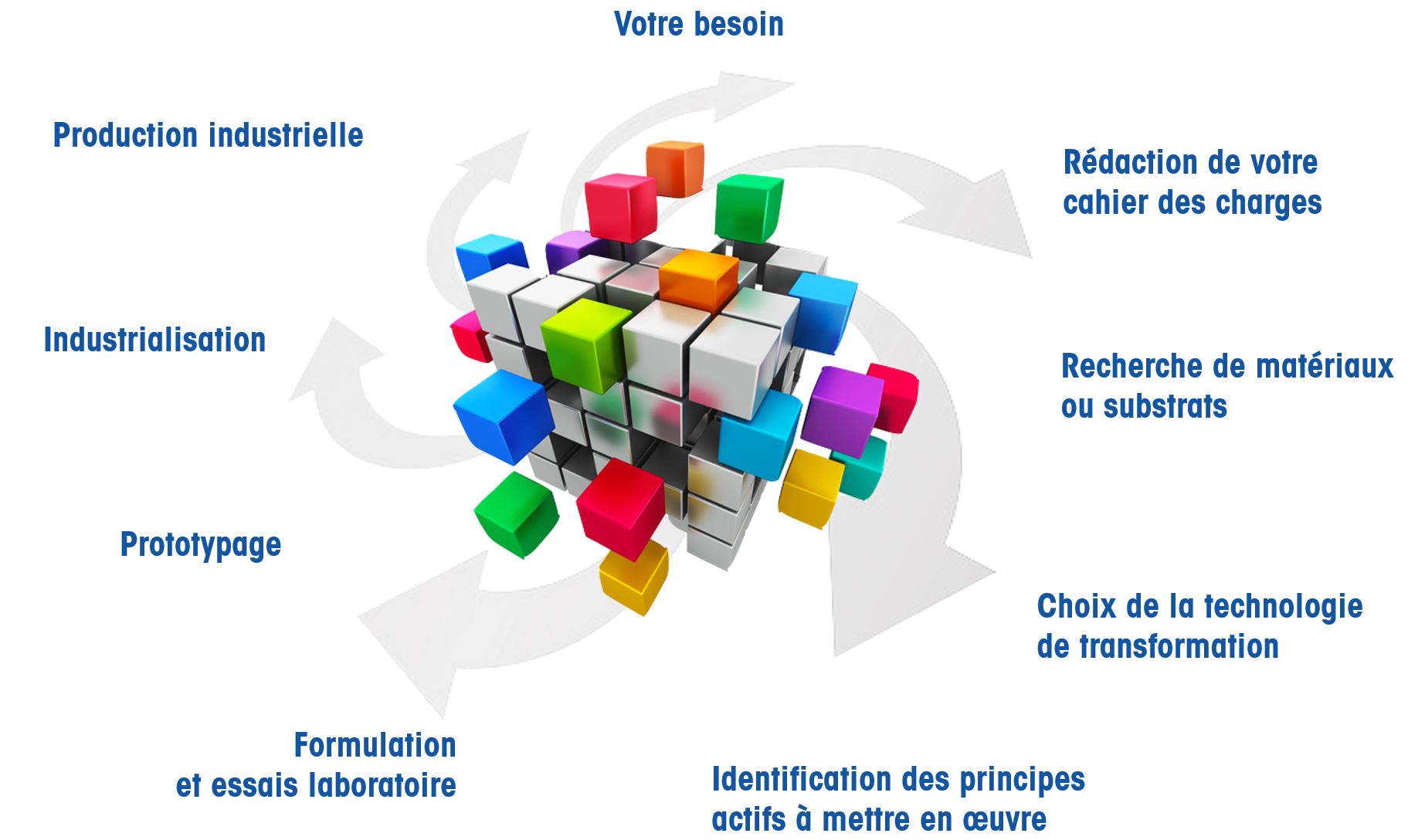 Nos compétences dans les domaines du textile, de la chimie de formulation, des matériaux et de la thermique, alliées à un savoir-faire reconnu dans la mise en oeuvre de solutions globales, nous permettent d’apporter une réponse en parfaite adéquation avec les attentes de nos clients, qu’il s’agisse de prototypages (essais laboratoire, atelier pilote) ou de productions en petites, moyennes et grandes séries.
